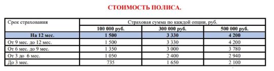 - тариф может быть уменьшен или увеличен в зависимости от выбранных условий страхования