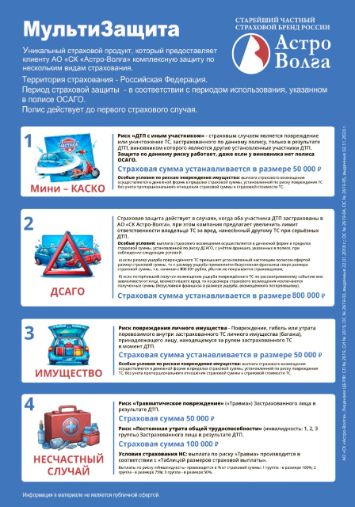 Уникальный страховой продукт, который предоставляет клиенту АО «СК „Астро-Волга“» комплексную защиту по нескольким видам страхования.