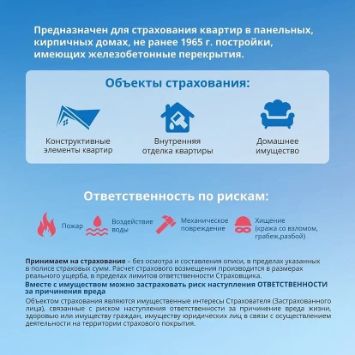 • Тип страхуемого имущества: Дом, квартира, земельный участок, иное строение/ Конструктивные элементы объекта недвижимости