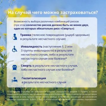 • Предназначен для страхования лиц в возрасте от 1 года до 70 лет включительно